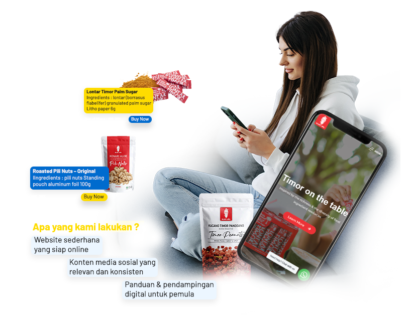 Dengan semangat “Dari NTT, untuk UMKM Naik Kelas”, kami menyediakan layanan pendampingan, pelatihan, dan platform online yang memudahkan UMKM membangun identitas digital mereka.